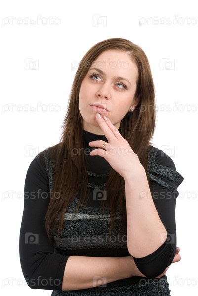 Красивая молодая женщина думает