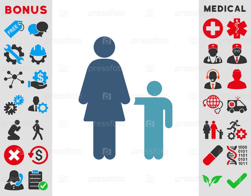 Мать с сыном иллюстрации значок. Стиль является биколор плоский символ, голубой и синий цвета, закругленные углы, белый фон