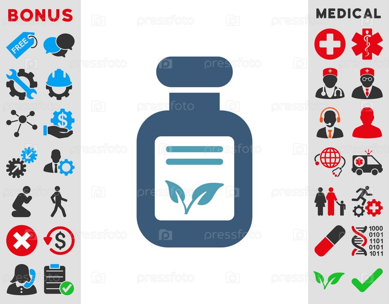Природные лекарства иллюстрации значок. Стиль является биколор плоский символ, голубой и синий цвета, закругленные углы, белый фон
