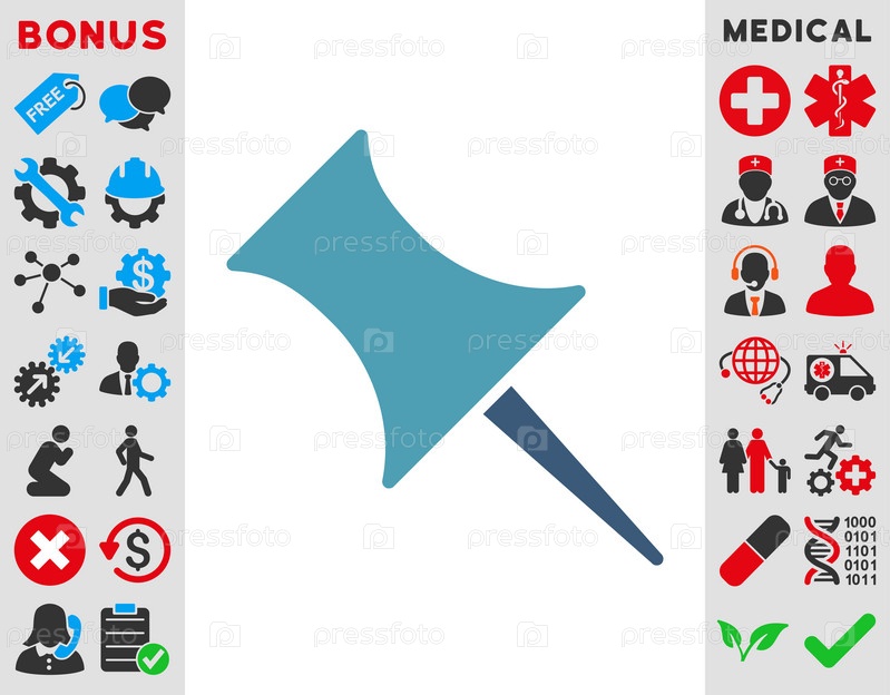 Иллюстрация значок закрепления. Стиль является биколор плоский символ, голубой и синий цвета, закругленные углы, белый фон