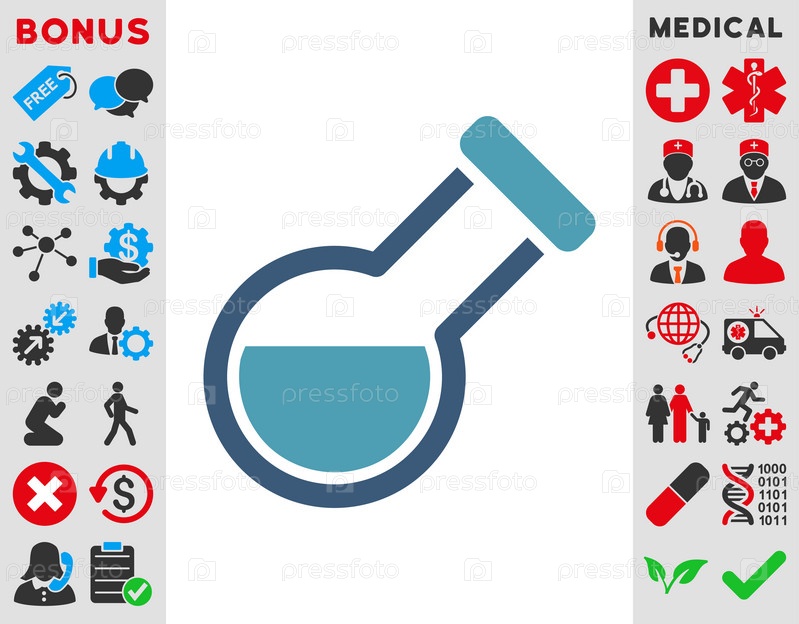 Реторта иллюстрации значок. Стиль является биколор плоский символ, голубой и синий цвета, закругленные углы, белый фон