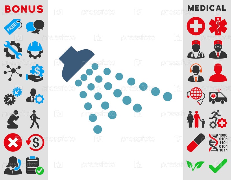Иконка душ иллюстрации. Стиль является биколор плоский символ, голубой и синий цвета, закругленные углы, белый фон