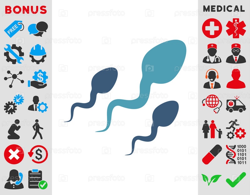 Спермы иллюстрации значок. Стиль является биколор плоский символ, голубой и синий цвета, закругленные углы, белый фон