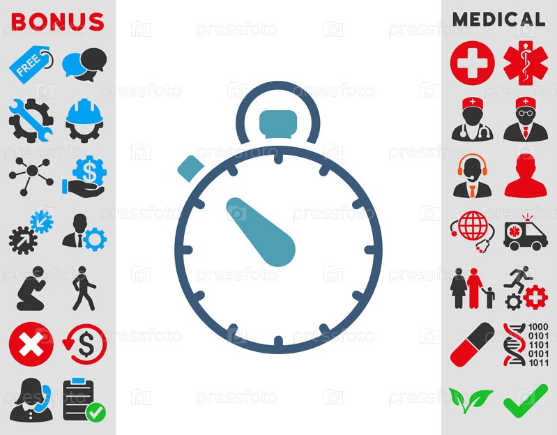 Иллюстрация значок секундомера. Стиль является биколор плоский символ, голубой и синий цвета, закругленные углы, белый фон
