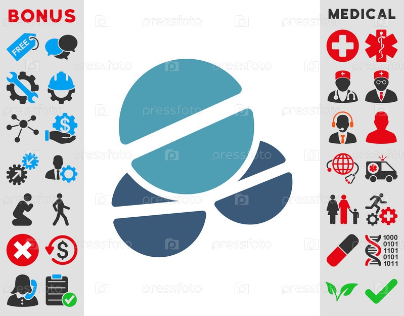Таблетки иллюстрации значок. Стиль является биколор плоский символ, голубой и синий цвета, закругленные углы, белый фон