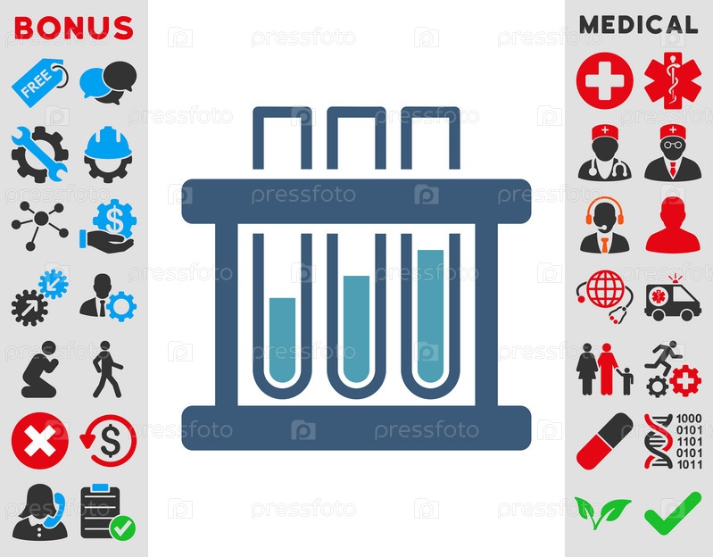 Пробирки иллюстрации значок. Стиль является биколор плоский символ, голубой и синий цвета, закругленные углы, белый фон