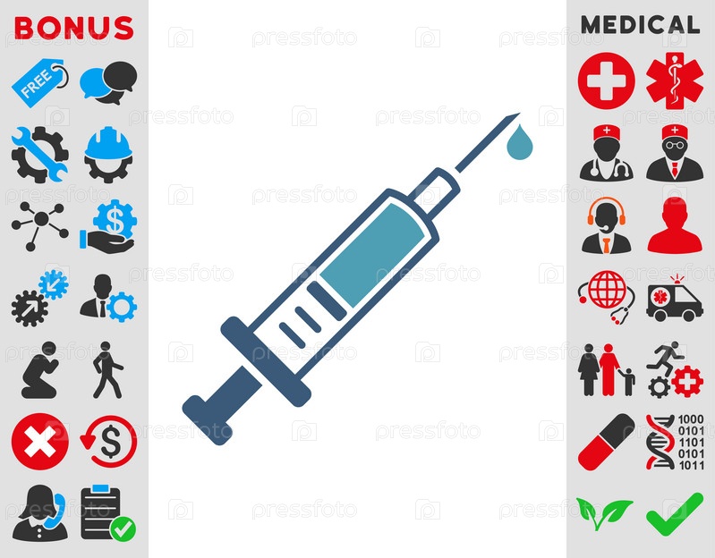 Вакцинации иллюстрации значок. Стиль является биколор плоский символ, голубой и синий цвета, закругленные углы, белый фон