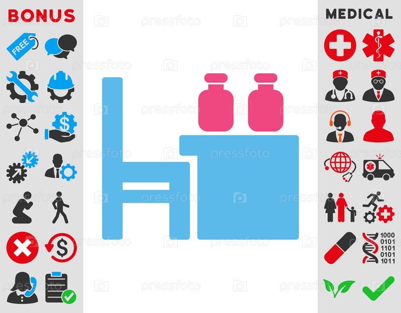 Аптекарь значок таблицы Иллюстрация. Стиль является биколор плоский символ, розовый и голубой цвета, закругленные углы, белый фон