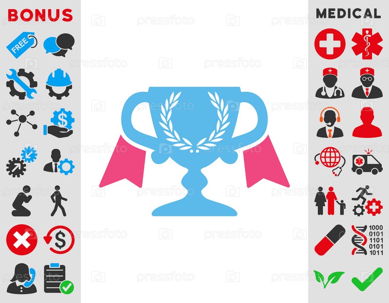 Премия Кубок иллюстрации значок. Стиль является биколор плоский символ, розовый и голубой цвета, закругленные углы, белый фон