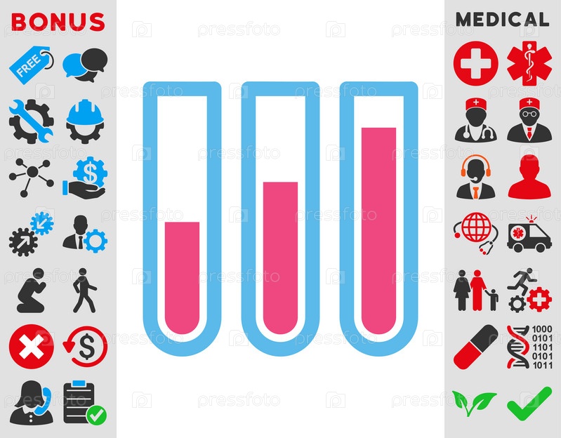 Анализ крови иллюстрации значок. Стиль является биколор плоский символ, розовый и голубой цвета, закругленные углы, белый фон