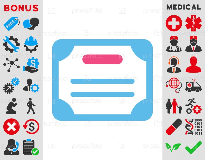 Сертификат иллюстрации значок. Стиль является биколор плоский символ, розовый и голубой цвета, закругленные углы, белый фон
