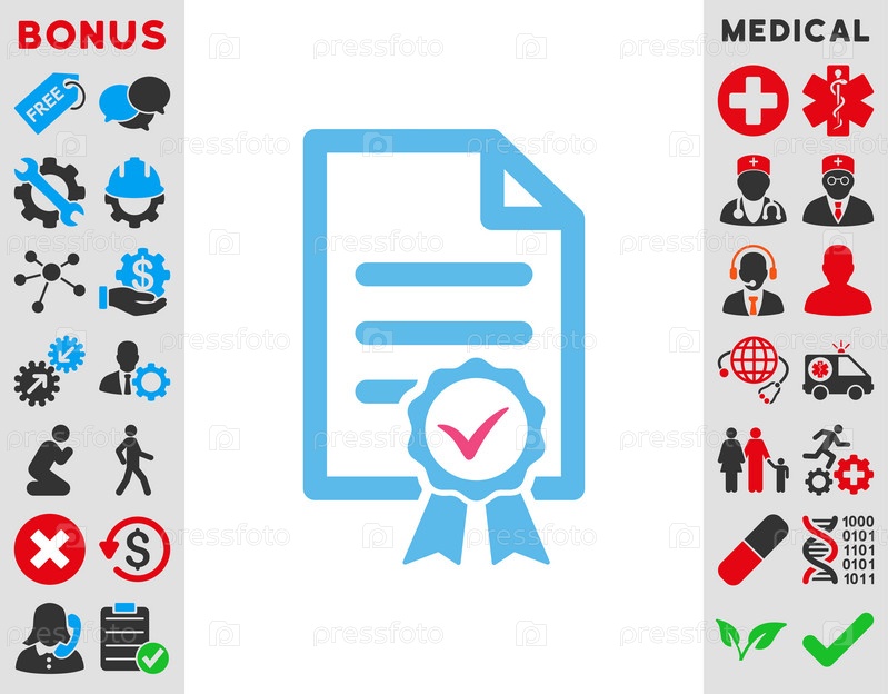 Сертифицированные иллюстрации значок. Стиль является биколор плоский символ, розовый и голубой цвета, закругленные углы, белый фон