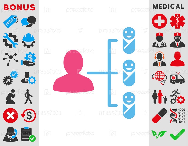 Дети ссылки иллюстрации значок. Стиль является биколор плоский символ, розовый и голубой цвета, закругленные углы, белый фон