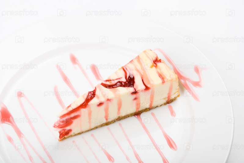 Чизкейк на тарелке, на белом фоне