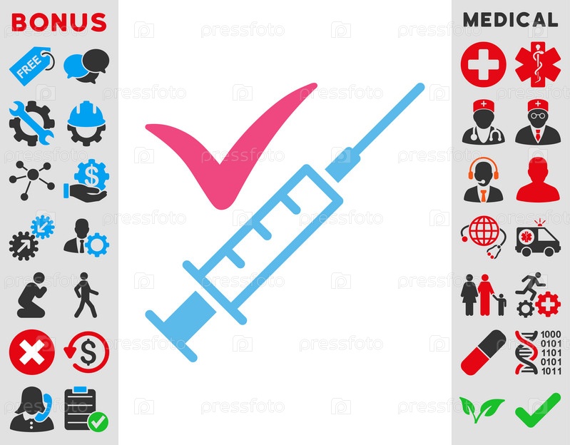 Сделали вакцинацию иллюстрации значок. Стиль является биколор плоский символ, розовый и голубой цвета, закругленные углы, белый фон