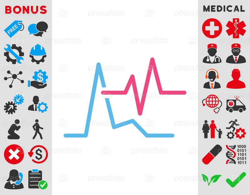 ЭКГ иллюстрации значок. Стиль является биколор плоский символ, розовый и голубой цвета, закругленные углы, белый фон