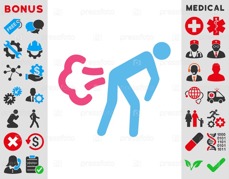 Значок пердят иллюстрации. Стиль является биколор плоский символ, розовый и голубой цвета, закругленные углы, белый фон