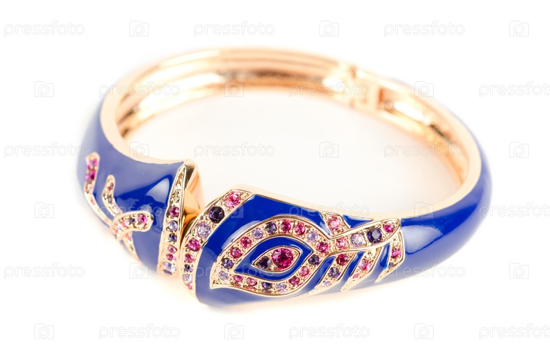 Синий браслет с цветными драгоценными камнями, изолированный на белом фоне