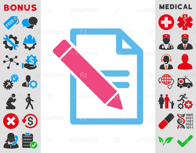 Редактирование записей иллюстрации значок. Стиль является биколор плоский символ, розовый и голубой цвета, закругленные углы, белый фон