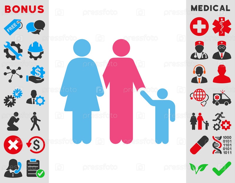 Иконы семейные иллюстрации. Стиль является биколор плоский символ, розовый и голубой цвета, закругленные углы, белый фон