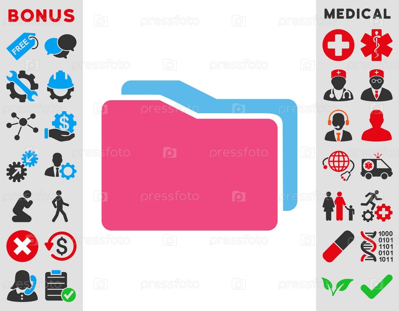 Значок папок иллюстрации. Стиль является биколор плоский символ, розовый и голубой цвета, закругленные углы, белый фон