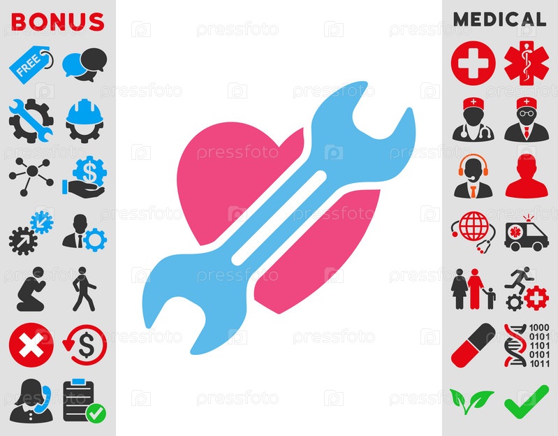Сердце хирургии иллюстрации значок. Стиль является биколор плоский символ, розовый и голубой цвета, закругленные углы, белый фон