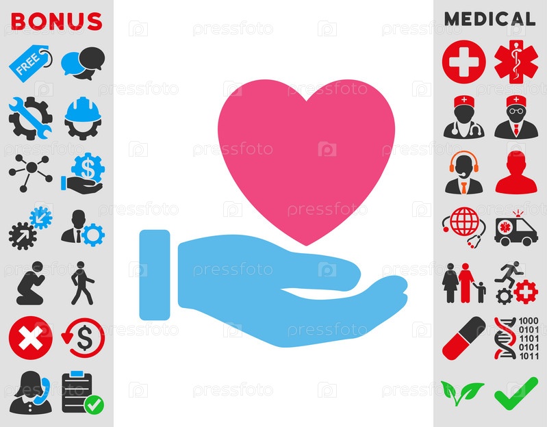 Сердце благотворительности иллюстрации значок. Стиль является биколор плоский символ, розовый и голубой цвета, закругленные углы, белый фон