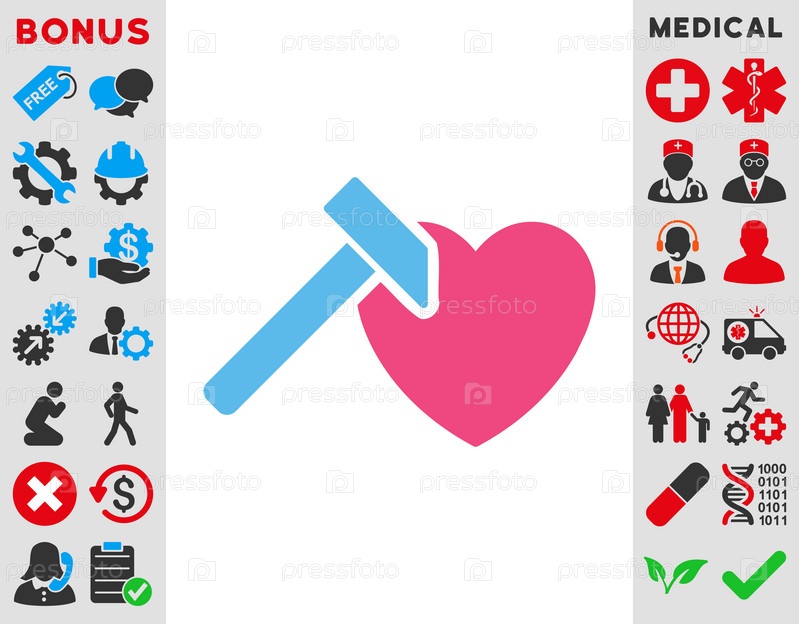 Сердце молота иллюстрации значок. Стиль является биколор плоский символ, розовый и голубой цвета, закругленные углы, белый фон
