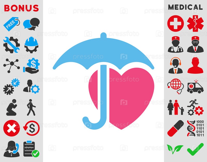 Сердце значок защиты иллюстрации. Стиль является биколор плоский символ, розовый и голубой цвета, закругленные углы, белый фон
