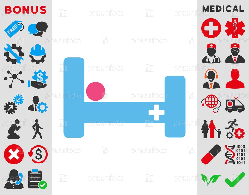 Больницы постели иллюстрации значок. Стиль является биколор плоский символ, розовый и голубой цвета, закругленные углы, белый фон