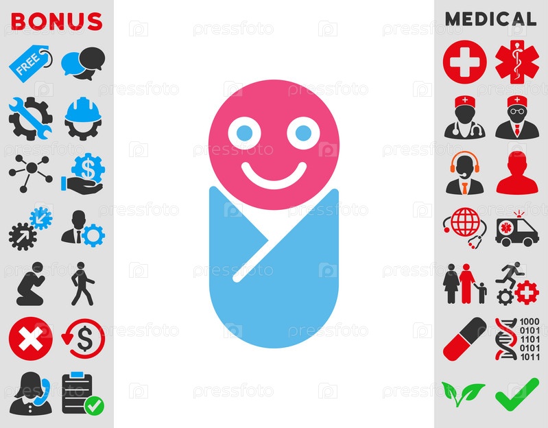 Детской иллюстрации значок. Стиль является биколор плоский символ, розовый и голубой цвета, закругленные углы, белый фон
