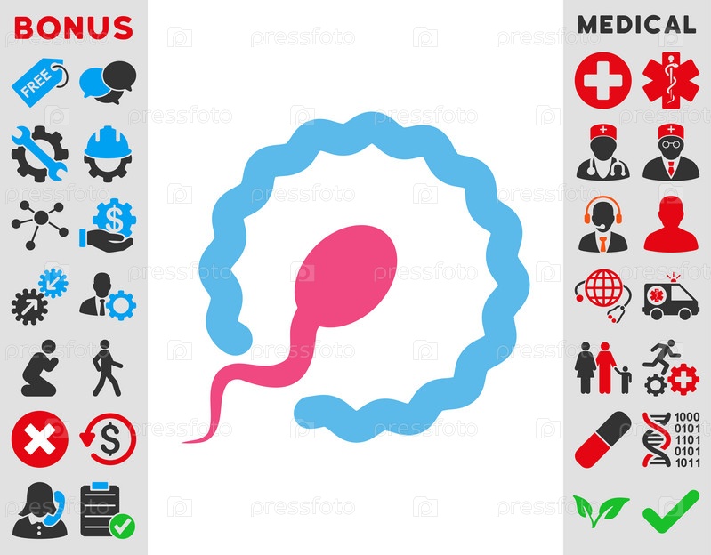 Осеменение иллюстрации значок. Стиль является биколор плоский символ, розовый и голубой цвета, закругленные углы, белый фон