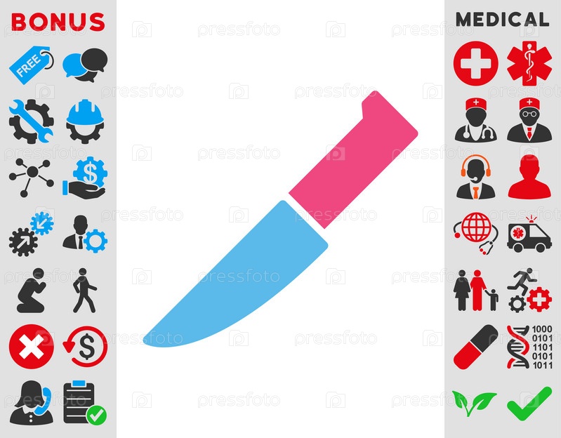 Нож иллюстрации значок. Стиль является биколор плоский символ, розовый и голубой цвета, закругленные углы, белый фон