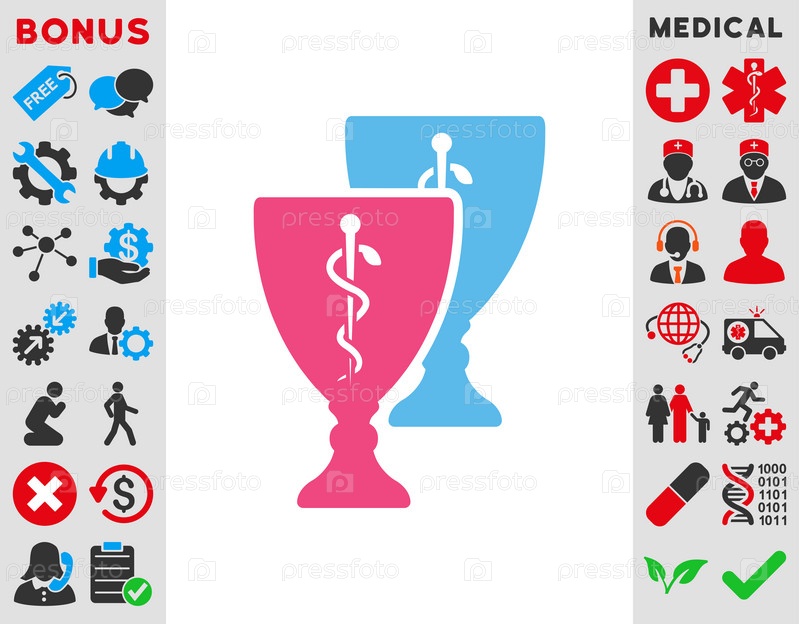 Медицинских икона иллюстрации чашки. Стиль является биколор плоский символ, розовый и голубой цвета, закругленные углы, белый фон