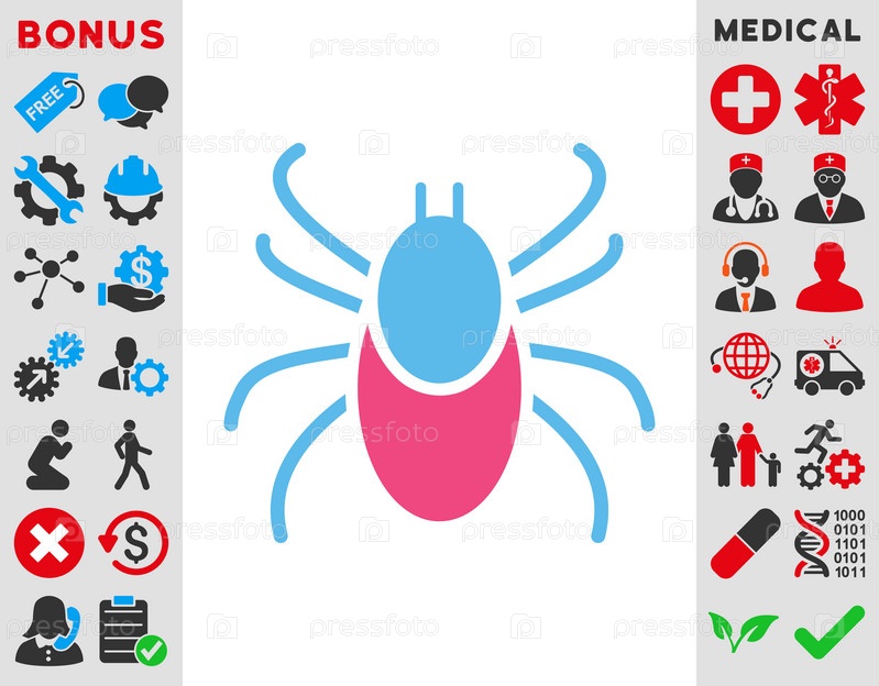 Клещ иллюстрации значок. Стиль является биколор плоский символ, розовый и голубой цвета, закругленные углы, белый фон