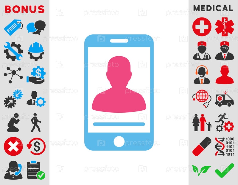 Мобильный контакт иллюстрации значок. Стиль является биколор плоский символ, розовый и голубой цвета, закругленные углы, белый фон