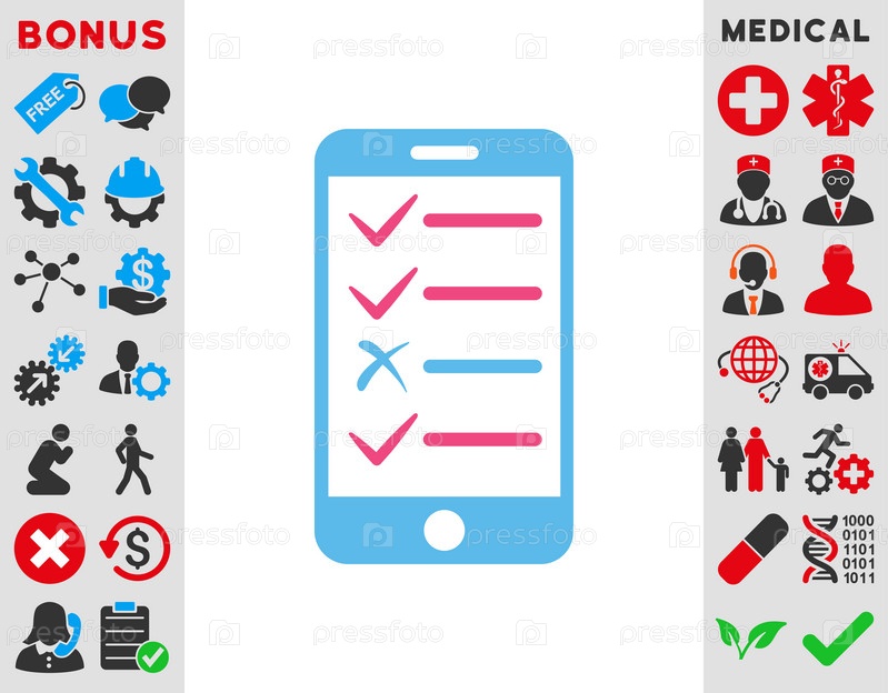 Мобильный тест иллюстрации значок. Стиль является биколор плоский символ, розовый и голубой цвета, закругленные углы, белый фон