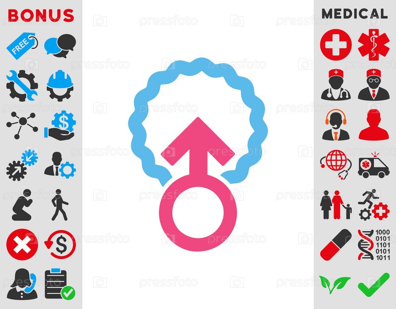 Яйцеклетка проникновения иллюстрации значок. Стиль является биколор плоский символ, розовый и голубой цвета, закругленные углы, белый фон