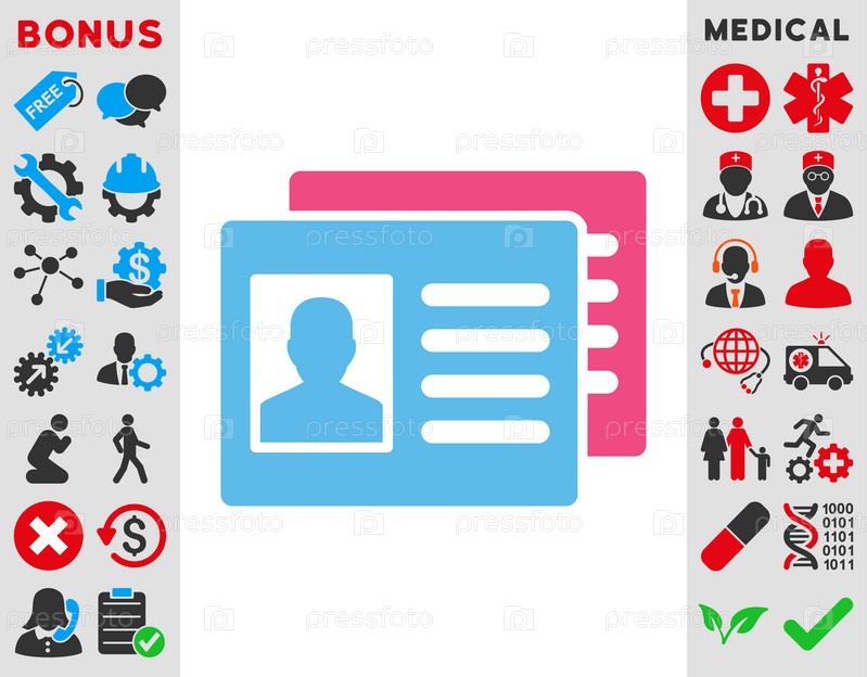 Пациент счетов иллюстрации значок. Стиль является биколор плоский символ, розовый и голубой цвета, закругленные углы, белый фон