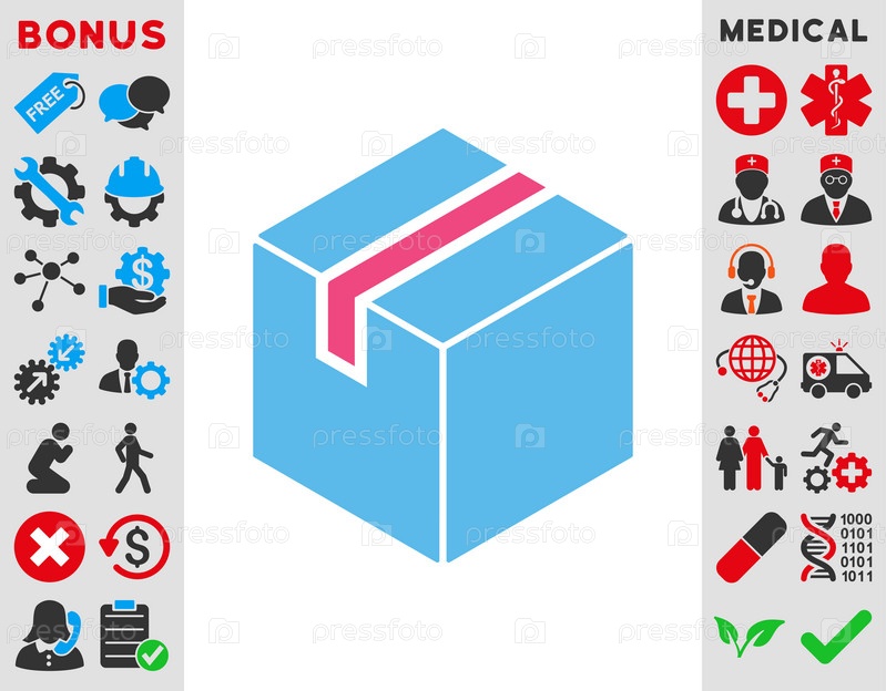 Рисунок значка пакета. Стиль является биколор плоский символ, розовый и голубой цвета, закругленные углы, белый фон