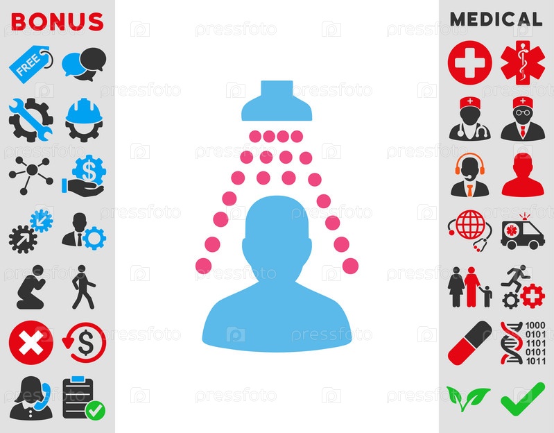Пациент дезинфекции иллюстрации значок. Стиль является биколор плоский символ, розовый и голубой цвета, закругленные углы, белый фон