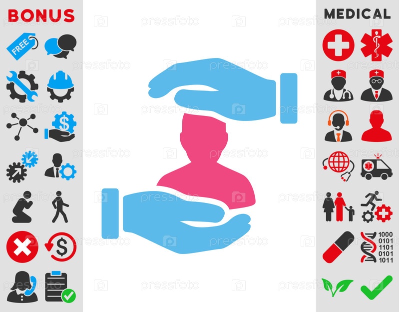 Пациент страхования иллюстрации значок. Стиль является биколор плоский символ, розовый и голубой цвета, закругленные углы, белый фон