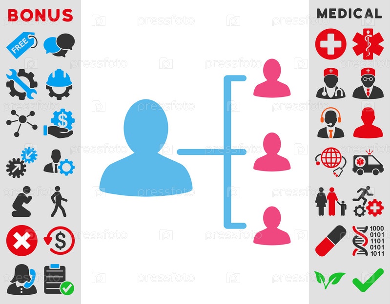 Пациент значок Иллюстрация отношений. Стиль является биколор плоский символ, розовый и голубой цвета, закругленные углы, белый фон