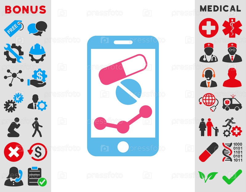 Аптека онлайн иллюстрации значок. Стиль является биколор плоский символ, розовый и голубой цвета, закругленные углы, белый фон