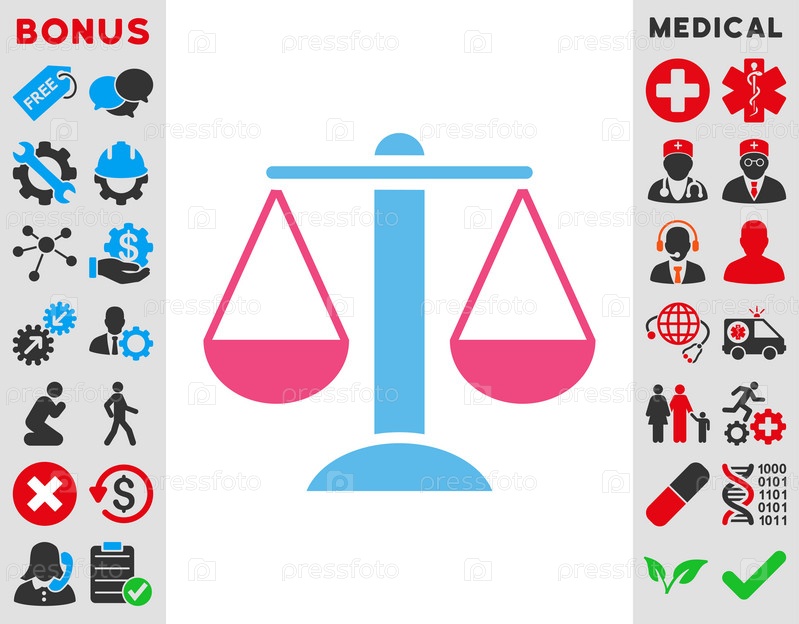 Весы иллюстрации значок. Стиль является биколор плоский символ, розовый и голубой цвета, закругленные углы, белый фон