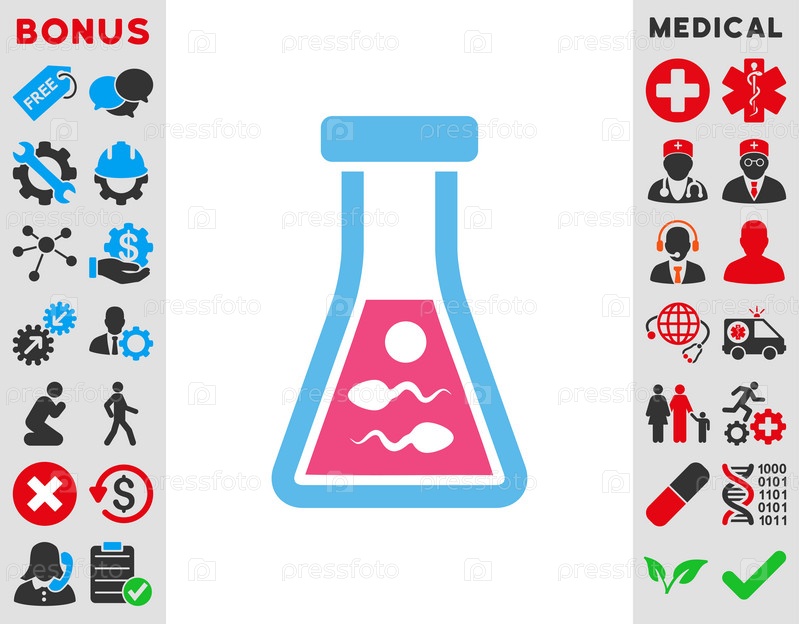 Спермы жидкого иллюстрации значок. Стиль является биколор плоский символ, розовый и голубой цвета, закругленные углы, белый фон