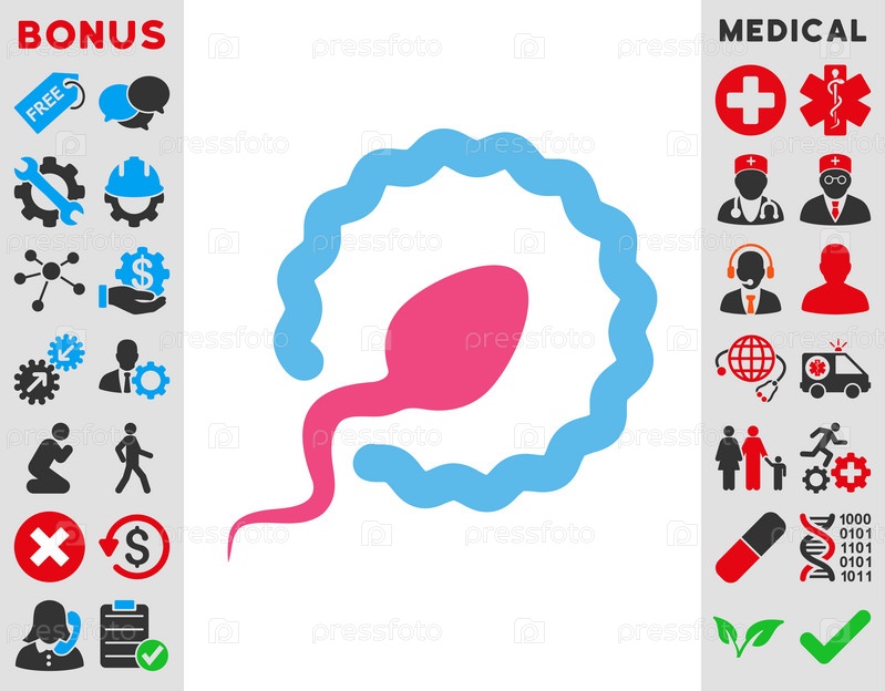 Икона иллюстрации проникновения спермы. Стиль является биколор плоский символ, розовый и голубой цвета, закругленные углы, белый фон
