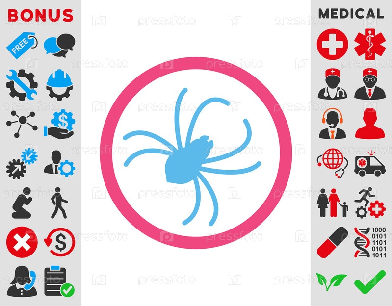 Паук иллюстрации значок. Стиль является биколор плоский символ, розовый и голубой цвета, закругленные углы, белый фон