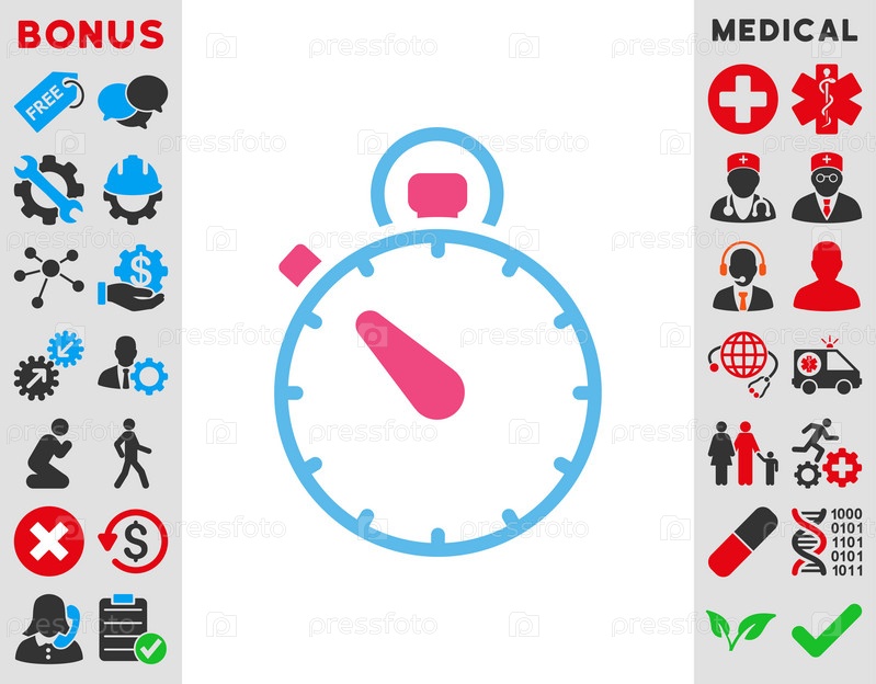 Иллюстрация значок секундомера. Стиль является биколор плоский символ, розовый и голубой цвета, закругленные углы, белый фон