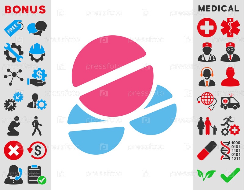 Таблетки иллюстрации значок. Стиль является биколор плоский символ, розовый и голубой цвета, закругленные углы, белый фон